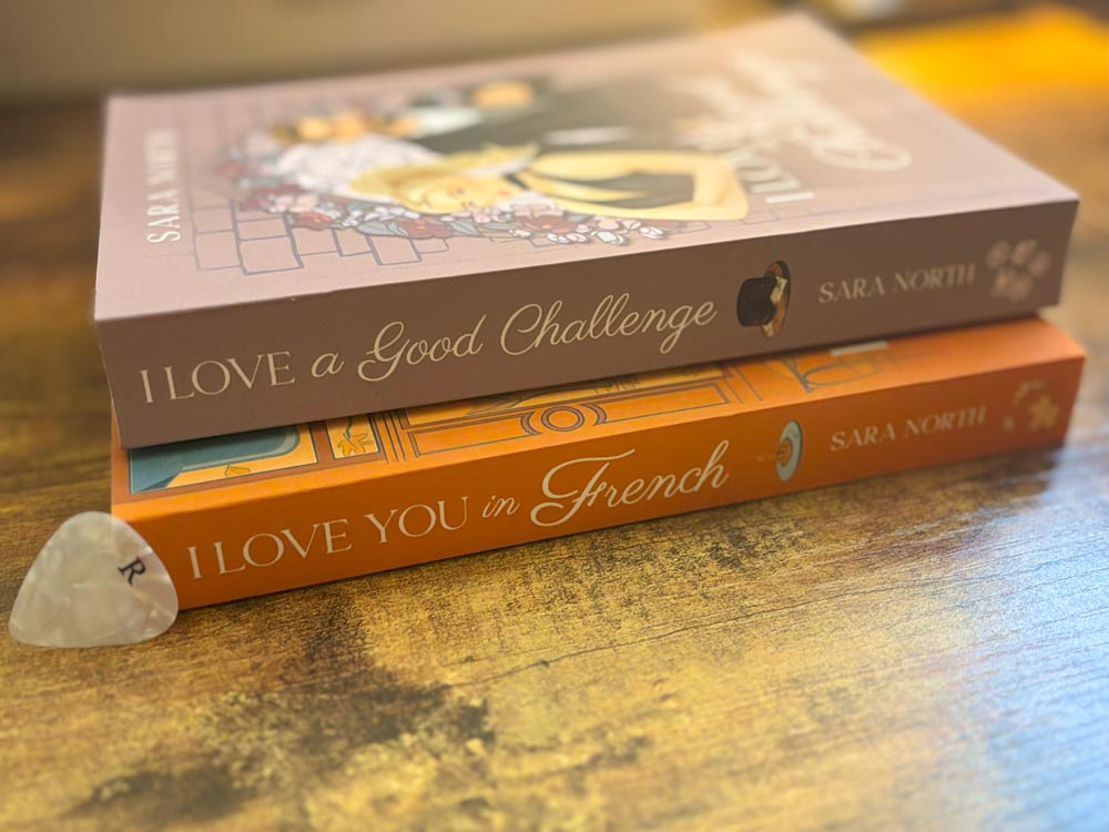 Includes a personalized note from the author, in addition to the signed books, an I Love You in French sticker sheet, and one of Rafe’s guitar picks